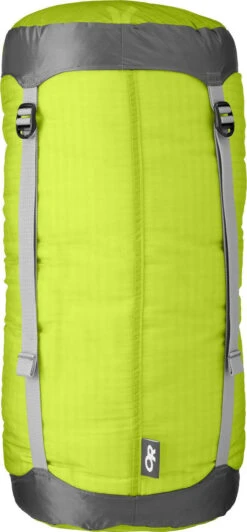 |-|Trente pour cent plus léger que sa version précédente, ce léger sac de compression réduit le volume de votre sac de couchage et autres objets compressibles de manière à pouvoir les ranger dans votre sac à dos. Le tissu silnyl résiste à l’humidité et se glisse aisément dans votre sac. Dans la poche située à l’extrémité, vous pouvez ranger de petits objets ou le sac même.