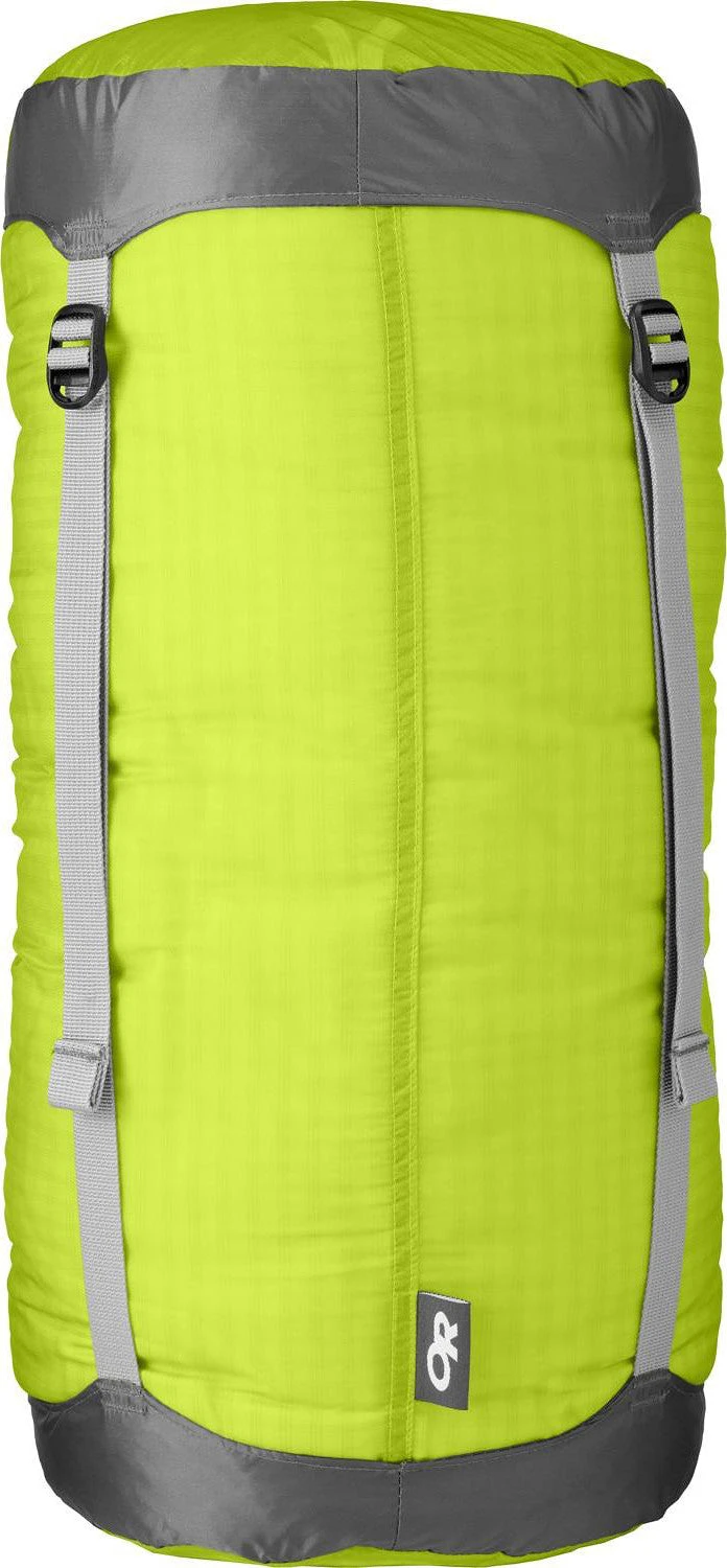 Thirty percent lighter than its previous incarnation, this compression sack reduces sleeping bags and other stuffables to a pack-friendly size. Thirty percent lighter than its previous incarnation, this lightweight compression sack reduces sleeping bags and other stuffables to a pack-friendly size. The silnyl fabric resists moisture and slides into your pack with ease. A pocket in the end cap keeps track of small items or can be used for self storage.